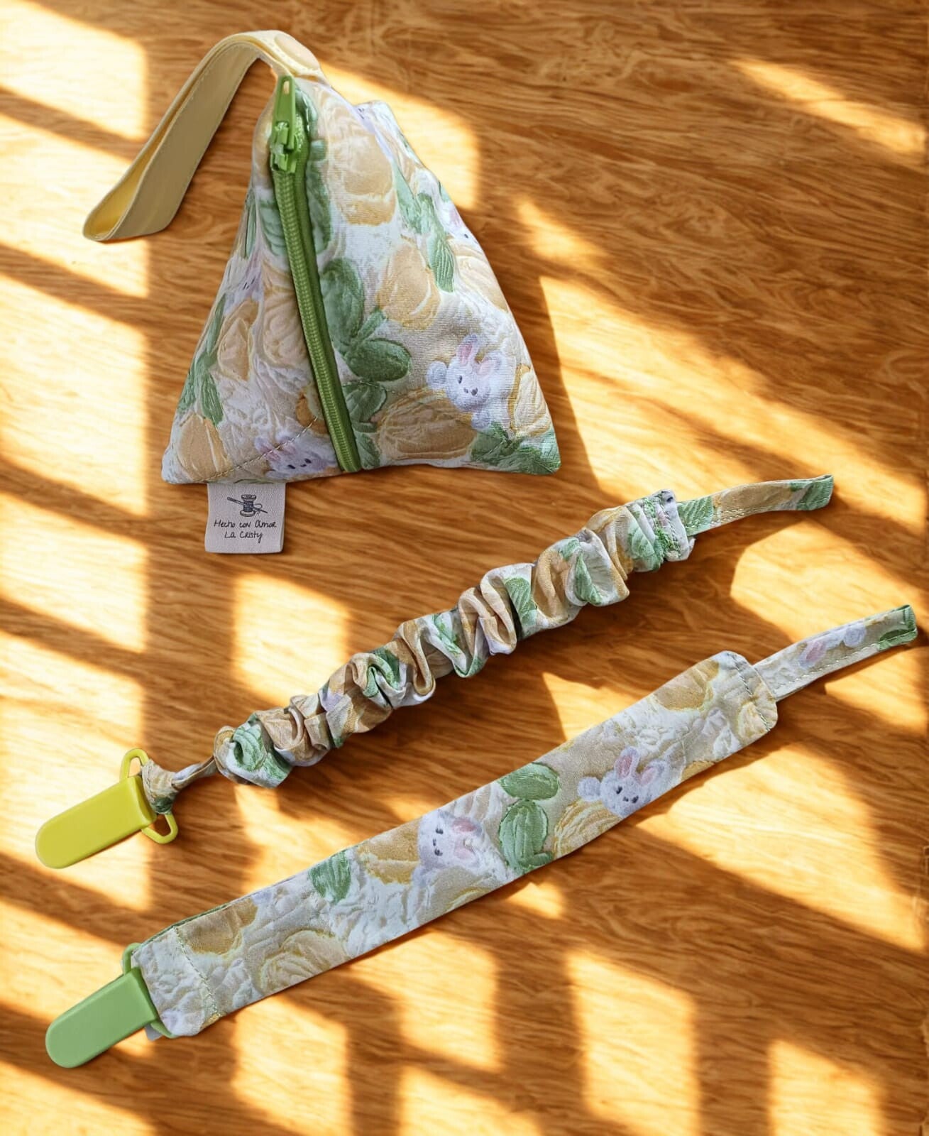Nuestra Bolsa Porta Chupetes está elaborada 100% a mano con algodón de alta calidad, garantizando un tacto suave y seguro para tu bebé. Es el accesorio imprescindible para guardar el chupete cuando no está en uso.